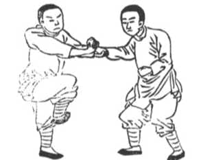 The Bubishi was in itself a copy of an earlier Chinese book, the WuBeiZhi, early Okinawan martial artists travelled to southern China to train and brought back their own copies, the coloured images in this article are from an early copy of the Bubishi I’ve also included some images from XingYi and TaiJi training manuals, you will note that they all look remarkably similar and also the images I’m sharing all include aspects of grabbing and hitting. Both XingYi and TaiJi have tended to focus on solo drills and Xings and combined that training with pushing hands of various types. The XingYi images are from a paired practise called An Shen Pao, this was a relatively early development in XingYi, the TaiJi paired set is a more recent creation, I can’t find reference to it prior to late 1930’s. Nevertheless it gives some insight into application, although it’s interesting to note that many of the illustration of the sequence show excess distance between partners, bordering on the previously mentioned consensual distance. This was probably done to make the movements flow more easily, the text the images are linked to makes references to grace and elegance indicating the direction that training was going in when the text was published in 1943.